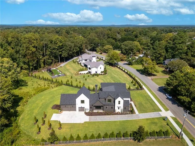 NEW CONSTRUCTION MODERN FARMHOUSE JUST MINUTES SOUTH OF CRABAPPLE MARKET. LOCATED IN TOP SCHOOLS AND BROOKFIELD COUNTRY CLUB COMMUNITY. This home offers what everyone in today's market is seeking- detailed finishes, walls of windows, soaring ceilings, stunning kitchen set on a 1.6+/- acre lot with private wooded views behind, on grade patio, yard and outdoor living space on main. 3 car garage with pass-through garage door. Gorgeous double door entry with 2-story fireside living space overlooked by the home's gourmet chef's kitchen featuring stone countertops, butler's pantry and walk in pantry. Living spaces open to a covered patio with fireplace, pool bathroom and walk out yard. Owner suite wing on main with large luxury bath and walk-in closets. As well as an additional bedroom or study on the main level. Upper level of home hosts three large bedroom suites as well as bonus room space above the garages with access from a back staircase. Home comes with full low voltage wiring. Option to join Brookfield Country Club (golf, 10 tennis court, 6 lane junior Olympic size pool with diving board and waterslide, restaurant, clubhouse and state-of-the-art fitness center). Prime location 5 minutes south of Downtown Milton/Crabapple, Less than 10 minutes to Downtown Roswell, and less than 15 minutes to Downtown Alpharetta and Avalon. Builder offering optional upgrades or pool option, warranty and great client relationships. Pool renderings photos 53, 54 and 58.
