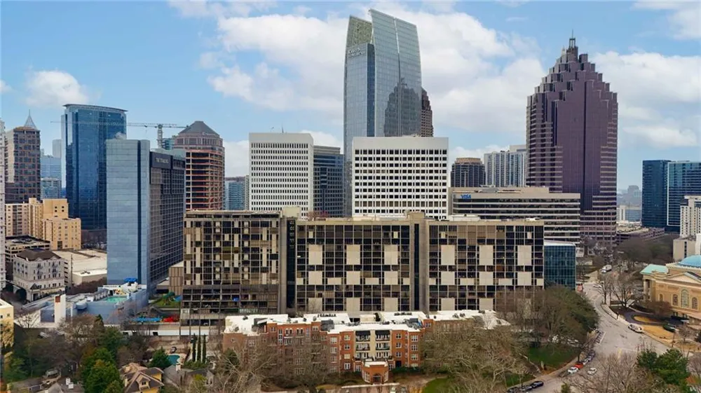 Stellar renovation meets timeless design in this exceptionally rare, oversized residence at Hanover House. This expansive one-bedroom plus den layout lives like a true home and is seldom available. Thoughtfully reimagined from top to bottom, the interiors feature wide-plank authentic hardwood floors, designer lighting by Rejuvenation, and floor-to-ceiling windows that flood the space with natural light and frame tranquil views toward Ansley Park. The fully renovated kitchen is both beautiful and functional, designed for serious cooks and effortless entertaining. White concrete countertops, custom cabinetry, subway tile extended to the ceiling, European-style floating shelves, Bosch stainless steel appliances, an induction cooktop, ceramic floors, and a convenient secondary hallway entry eliminate the feel of a closed-off kitchen. A full-size washer and dryer are discreetly tucked within the space. The gracious living and dining areas easily accommodate gatherings of twelve or more, while a separate den provides the perfect work-from-home office or guest retreat, complete with a Murphy bed and private bath. The oversized primary suite offers a serene escape, complemented by a spa-like bathroom featuring Carrara marble double vanities and floors, frameless glass shower, subway tile throughout, and a towel warmer. Additional highlights include a covered parking space and a temperature-controlled storage unit. Hanover House offers true full-service living with 24/7 professional concierge, security, controlled access garage, and utilities included in the association fee—electricity, heating and air conditioning, water, internet, and cable. Rentals and pets are not permitted, preserving the building’s quiet, owner-occupied atmosphere. Steps from MARTA, Piedmont Park, the Woodruff Arts Center, Atlanta Symphony Orchestra, High Museum, Botanical Garden, Winn Park, and Colony Square’s acclaimed dining and entertainment—including Rumi’s Kitchen, Holman & Finch, and IPIC Theater—this is city living at its most refined. Seller would consider selling furnished. A truly quintessential home, offering scale, quality, and location rarely found in Midtown.