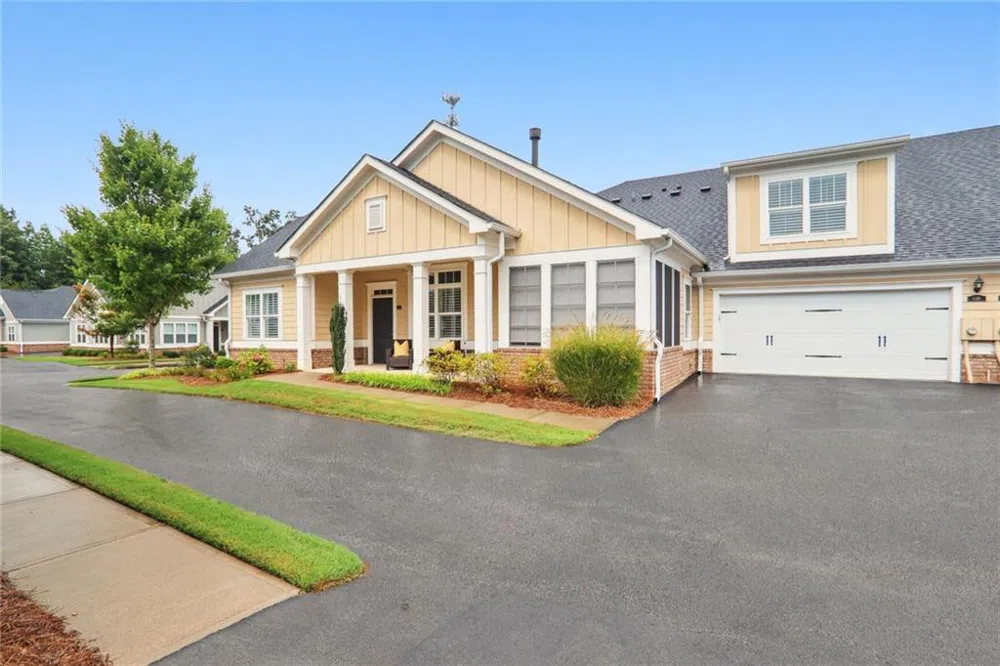 **Absolutely stunning luxury ranch condo with low-maintenance living in the desirable Orchards at Cherokee Station!** This highly sought-after “Charleston” model has been impeccably maintained and is in immaculate condition. It includes many designer upgrades, plus fully zoned HVAC with separate thermostat control in the main living area, master bedroom suite, and 2nd floor bonus area. The spacious open floor plan features abundant natural light and attractive plantation shutters on the windows. The great room, featuring a cozy natural gas fireplace, seamlessly connects to a formal dining area and a separate office/study on the main floor. The large eat-in kitchen boasts generous solid-surface counter space & peninsula with a comfortable seating area for family and guests. There is also extensive maple cabinet storage with pull-out shelving for easy access and modern stainless-steel appliances - including a Kitchen Aide gas stove. A charming 4-season sunroom off the kitchen is perfect for your morning coffee or afternoon reading and includes Venetian-style shades for privacy and comfort. The main floor also offers a spacious master suite with a luxurious en-suite bath and two spacious walk-in closets. An additional main floor guest bedroom with an adjacent full bath is perfect for overnight guests. The spacious two-car garage leads into a convenient mudroom/laundry area and includes a high-quality Whirlpool washer & dryer set. This home stands out with updated lighting and plumbing fixtures and plantation shutters throughout. The upper-level bonus area offers a private, versatile space that can be used for a bedroom suite, office, media room, man-cave, craft room, or whatever may suit your needs. A full ensuite bath and extensive attic storage completes the amenities. This home is ideally located within the neighborhood and has been fully wired by the builder for a whole-house security system. This Orchards community is very active with many clubs and activities to be a part of, a pool, clubhouse, fitness facility, all in close proximity to shopping and the Milton/Woodstock communities.